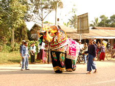 Dancing Elephant Festival is also another famous festival in Myanmar. It is held in Kyaukse, near Mandalay. It is a marvelous performance of two men together to dance in rhythm. A huge elephant figure is made from bamboo and paper. Men take their places inside the figure and dance around the town to the accompaniment of Dobat and Drums. The elephant dancers circles three times at the foot of the hill to pay homage to the Shwe Tha Lyaung Pagoda. It is a dance that requires precise rhythm and timing in order for the elephant dancers to maintain unity inside the elephant figure. People from far and near come to visit Kyaukse and watch the elephant dance.